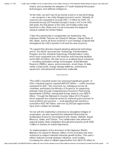 5/20/25, 1:11 PM Fourth Edition of Make it in the Emirates Opens in Abu Dhabi in Presence of His Highness Sheikh Hamid bin Zayed | UAE News 24/7