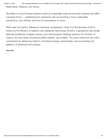 5/20/25, 1:12 PM UAE’s industrial trailblazers honored at Make it in the Emirates 2025 - Middle East Business News and Information - mid-east.info