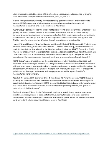 KEZAD Group’s participation as the enablement partner for Make it in the Emirates underscores the