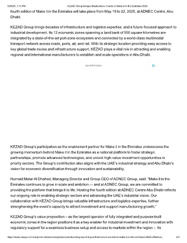 5/28/25, 1:15 PM KEZAD Group brings infrastructure muscle to Make it in the Emirates 2025