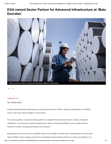 https://en.aletihad.ae/news/business/4573883/ega-named-sector-partner-for-advanced-infrastructure-at--mak 1/3