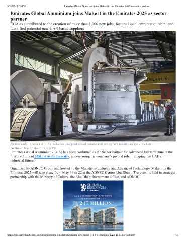 5/19/25, 2:33 PM Emirates Global Aluminium joins Make it in the Emirates 2025 as sector partner