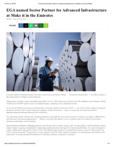 5/19/25, 2:34 PM EGA named Sector Partner for Advanced Infrastructure at Make it in the Emirates