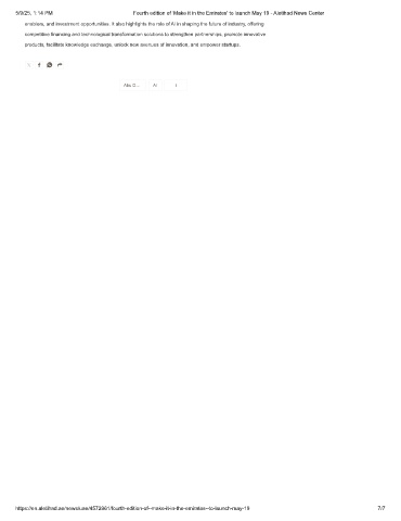 5/9/25, 1:14 PM Fourth edition of 'Make it in the Emirates' to launch May 19 - Aletihad News Center