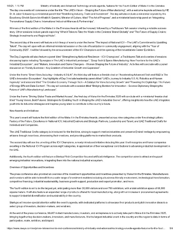 5/9/25, 1:15 PM Ministry of Industry and Advanced Technology unveils agenda, features for the Fourth Edition of Make it in the Emirates