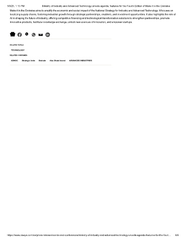 5/9/25, 1:15 PM Ministry of Industry and Advanced Technology unveils agenda, features for the Fourth Edition of Make it in the Emirates