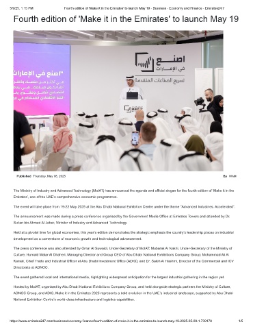 5/9/25, 1:15 PM Fourth edition of 'Make it in the Emirates' to launch May 19 - Business - Economy and Finance - Emirates24|7