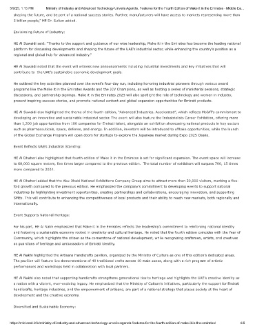 5/9/25, 1:15 PM Ministry of Industry and Advanced Technology Unveils Agenda, Features for the Fourth Edition of Make it in the Emirates - Middle Ea…