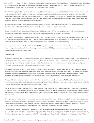5/9/25, 1:15 PM Ministry of Industry and Advanced Technology Unveils Agenda, Features for the Fourth Edition of Make it in the Emirates - Middle Ea…