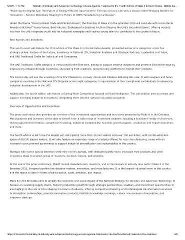 5/9/25, 1:15 PM Ministry of Industry and Advanced Technology Unveils Agenda, Features for the Fourth Edition of Make it in the Emirates - Middle Ea…