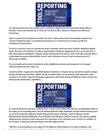 evolution in the UAE’s industrial landscape, supported by Abu Dhabi National Exhibition Centre’s world-class