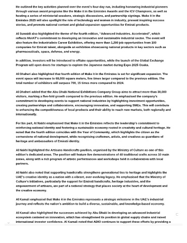 Al Dhaheri also highlighted that fourth edition of Make it in the Emirates is set for significant expansion. The