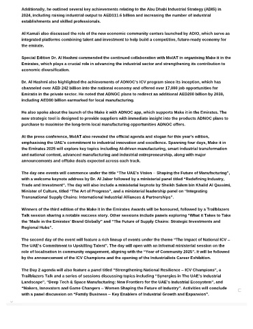 2024, including raising industrial output to AED111.6 billion and increasing the number of industrial