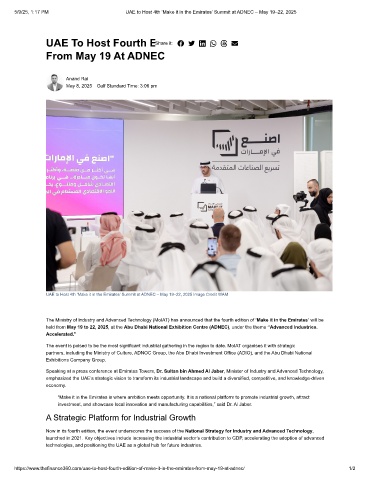 5/9/25, 1:17 PM UAE to Host 4th ‘Make it in the Emirates’ Summit at ADNEC – May 19–22, 2025