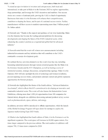 5/9/25, 1:17 PM Fourth edition of 'Make it in the Emirates' to launch May 19