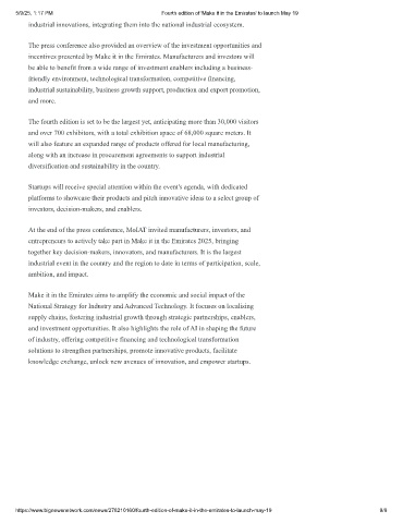 5/9/25, 1:17 PM Fourth edition of 'Make it in the Emirates' to launch May 19