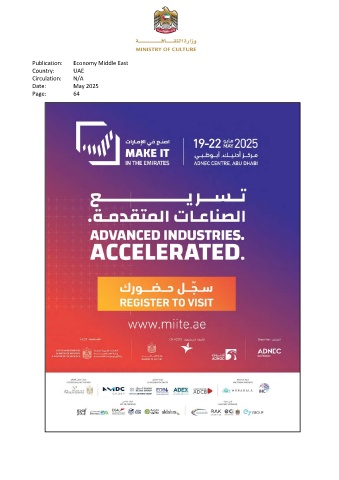 Publication: Economy Middle East Country: UAE Circulation: N/A Date: May 2025 Page: 64