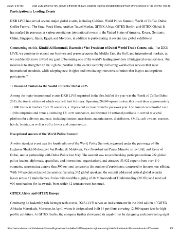 9/9/25, 9:50 AM DXB LIVE achieves 40% growth in first half of 2025, expands regional and global footprint and offers services to 127 events | Web R…