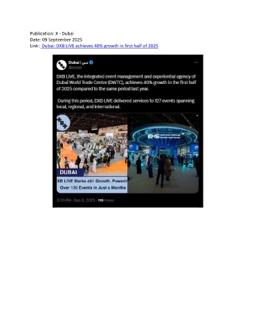 Publication: X - Dubai Date: 09 September 2025 Link: Dubai: DXB LIVE achieves 40% growth in first half of 2025