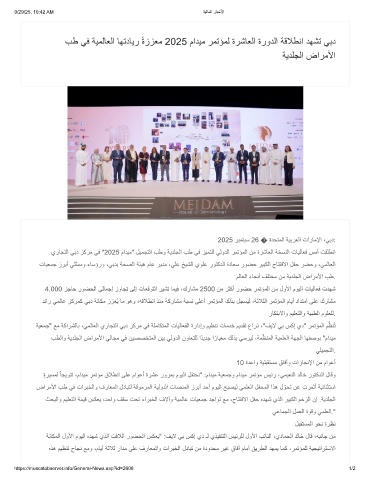 يرﺎﺟﺗﻟا ﻲﺑد زﻛرﻣ ﻲﻓ "2025 مادﯾﻣ" لﯾﻣﺟﺗﻟا بطو ﺔﯾدﻠﺟﻟا بط ﻲﻓ زﯾﻣﺗﻠﻟ ﻲﻟودﻟا رﻣﺗؤﻣﻟا نﻣ ةرﺷﺎﻌﻟا ﺔﺧﺳﻧﻟا تﺎﯾﻟﺎﻌﻓ سﻣأ تﻘﻠطﻧا