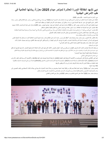 ﻰﻟإ ،يدﯾدﺟﺗﻟا بطﻟاو ﻲﻋﺎﻧطﺻﻻا ءﺎﻛذﻟا تﻻﺎﺟﻣ ﻲﻓ ﺔﯾﻋوﻧﻟا تازﺎﺟﻧﻹا ثدﺣأ ﮫﻟﻼﺧ نﻣ ضرﻌﺗﺳﯾ ،ﺔﯾﻣﻠﻋ ﺔﺳﻠﺟ 150 نﻣ رﺛﻛأ مﺿﯾ ًﻼﻓﺎﺣ ً ﺎﯾﻣﻠﻋ ً ﺎﺟﻣﺎﻧرﺑ "2025 مادﯾﻣ" رﻣﺗؤﻣ نﻣﺿﺗﯾ