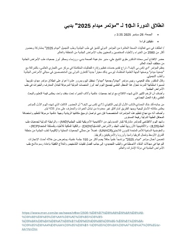 روضحو ةكراشمب " 2025 ماديم" ليمجتلا بطو ةيدلجلا بط يف زيمتلل يلودلا رمتؤملا نم ةرشاعلا ةخسنلا تايلاعف يبد يف تقلطنا /