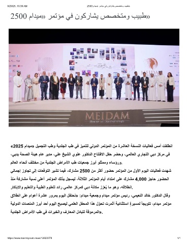 «2025 مادﯾﻣ» لﯾﻣﺟﺗﻟا بطو ﺔﯾدﻠﺟﻟا بط ﻲﻓ زﯾﻣﺗﻠﻟ ﻲﻟودﻟا رﻣﺗؤﻣﻟا نﻣ ةرﺷﺎﻌﻟا ﺔﺧﺳﻧﻟا تﺎﯾﻟﺎﻌﻓ سﻣأ تﻘﻠطﻧا