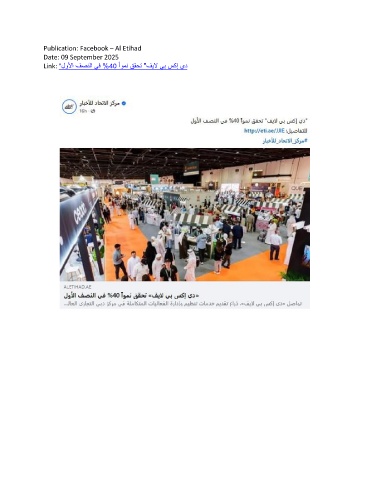 Publication: Facebook – Al Etihad Date: 09 September 2025 Link: " لولأا فصنلا يف %40 ًاومن ققحت "فيلا يب سكإ يد