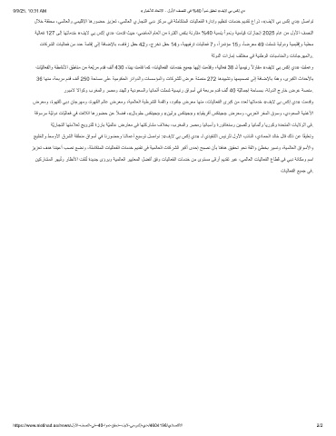 9/9/25, 10:31 AM «رﺎﺑﺧﻸﻟ دﺎﺣﺗﻻا - لوﻷا فﺻﻧﻟا ﻲﻓ %40 ًاوﻣﻧ ﻖﻘﺣﺗ «فﯾﻻ ﻲﺑ سﻛإ يد