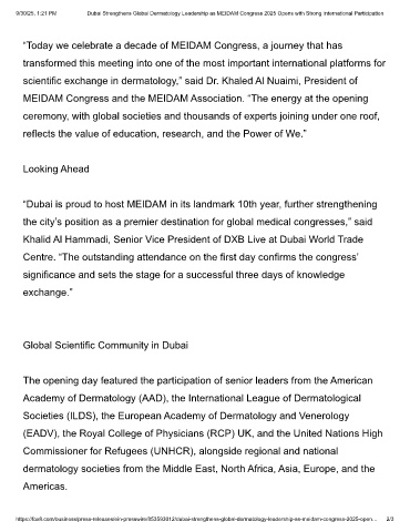 9/30/25, 1:21 PM Dubai Strengthens Global Dermatology Leadership as MEIDAM Congress 2025 Opens with Strong International Participation