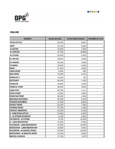 WEBSITE VALUE (IN AED) TOTAL MEDIA REACH NUMBER OF HITS