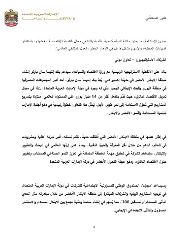 رﺎﻤﺜﺘﺴاو ،ءارﻀﺨﻟا ﺔﯿدﺎﺼﺘﻗﻻا ﺔﯿﻤﻨﺘﻟا لﺎﺠﻤ ﻲﻓ ةدﺌار ﺔﯿﻤﻟﺎﻋ ﺔﻬﺠوﻛ ﺔﻟودﻟا ﺔﻨﺎﻛﻤ ززﻌﯿ ﺎﻤ ،ﺔﻤادﺘﺴﻻا ئدﺎﺒﻤ