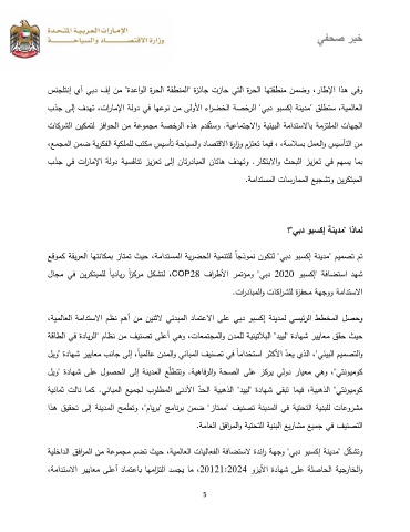 بذﺠ ﻰﻟإ فدﻬﺘ ،تارﺎﻤﻹا ﺔﻟود ﻲﻓ ﺎﻬﻋوﻨ نﻤ ﻰﻟوﻷا ءارﻀﺨﻟا ﺔﺼﺨرﻟا "ﻲﺒد وﺒﺴﻛإ ﺔﻨﯿدﻤ" قﻠطﺘﺴ ،ﺔﯿﻤﻟﺎﻌﻟا