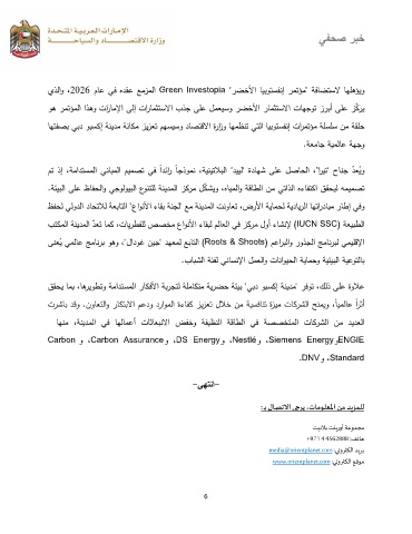 يذﻟاو ، 2026 مﺎﻋ ﻲﻓ ﻩدﻘﻋ ﻊﻤزﻤﻟا Green Investopia "رﻀﺨﻷا ﺎﯿﺒوﺘﺴﻔﻨإ رﻤﺘؤﻤ" ﺔﻓﺎﻀﺘﺴﻻ ﺎﻬﻠﻫؤﯿو