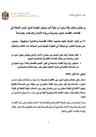 ﻲﻓ ﺔﻛارشﻟا صرﻓ ز�زﻌت ﻟ ﺔ�دنﻬﻟا ش�دارﺒ اردﻨأ ﺔ�ﻻو نﻤ ﺎ ً �رازو ادﻓو ﻞبﻘتس� قوط نﺒ