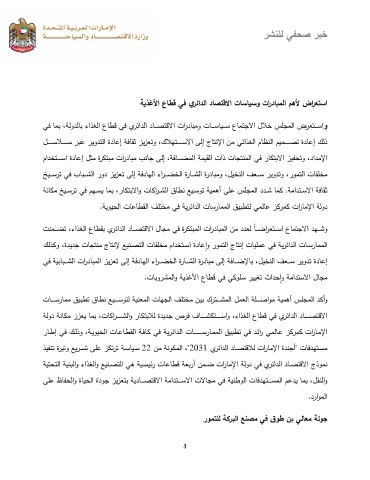 ﻲﻓ ﺎﻤﺒ ، ﺔﻟودﻟﺎﺒ ءاذﻐﻟا عﺎطﻗ ﻲﻓ يرﺌادﻟا دﺎـــــﺼﺘﻗﻻا تاردﺎﺒﻤو تﺎـــــﺴﺎﯿـــــﺴ عﺎﻤﺘﺠﻻا لﻼﺨ سﻠﺠﻤﻟا ضرﻌﺘـــــﺴا و