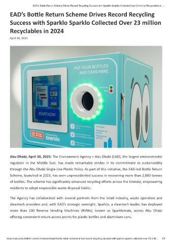 EAD’s Bottle Return Scheme Drives Record Recycling Success with Sparklo Sparklo Collected Over 23 million Recyclables in …