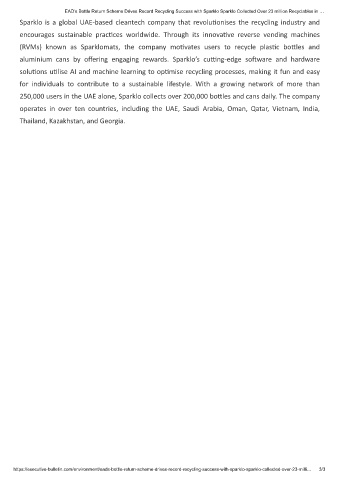 250,000 users in the UAE alone, Sparklo collects over 200,000 bottles and cans daily. The company