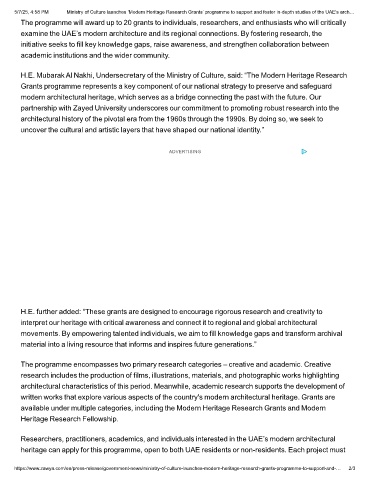 https://www.zawya.com/en/press-release/government-news/ministry-of-culture-launches-modern-heritage-research-grants-programme-to-support-and-… 2/3