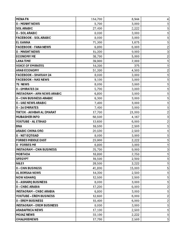 X – CNN BUSINESS ARABIC 6,300 3,000 1