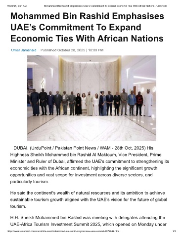 10/29/25, 9:21 AM Mohammed Bin Rashid Emphasises UAE’s Commitment To Expand Economic Ties With African Nations - UrduPoint