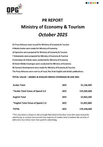 TOTAL VALUE – ARABIC & ENGLISH MEDIA COVERAGE IN UAE AED.