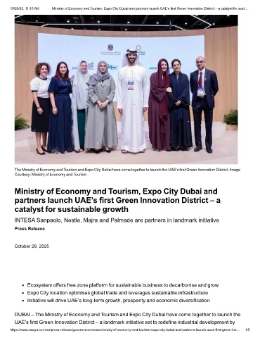 10/29/25, 11:16 AM Ministry of Economy and Tourism, Expo City Dubai and partners launch UAE’s first Green Innovation District – a catalyst for sust…