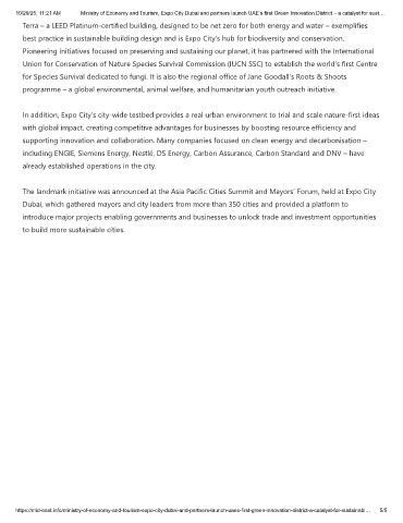10/29/25, 11:21 AM Ministry of Economy and Tourism, Expo City Dubai and partners launch UAE’s first Green Innovation District – a catalyst for sust…