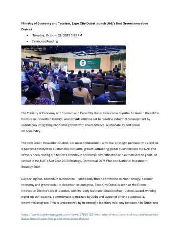 Ministry of Economy and Tourism, Expo City Dubai launch UAE’s first Green Innovation