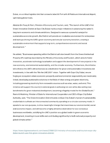 Authority, said, “The Green Innovation District builds on Expo City Dubai’s myriad of sustainability