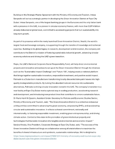 Ministry of Economy and Tourism, said, “The Green Innovation District is a collective endeavour