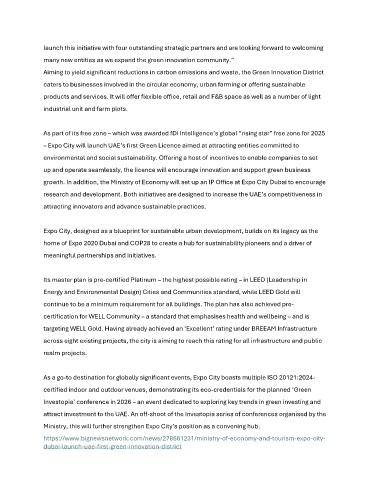 growth. In addition, the Ministry of Economy will set up an IP Office at Expo City Dubai to encourage