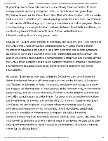 10/29/25, 11:25 AM Ministry Of Economy And Tourism, Expo City Dubai Launch UAE’s First Green Innovation District - UrduPoint