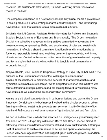 10/29/25, 11:25 AM Ministry Of Economy And Tourism, Expo City Dubai Launch UAE’s First Green Innovation District - UrduPoint